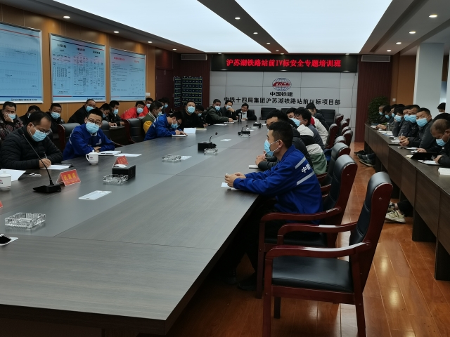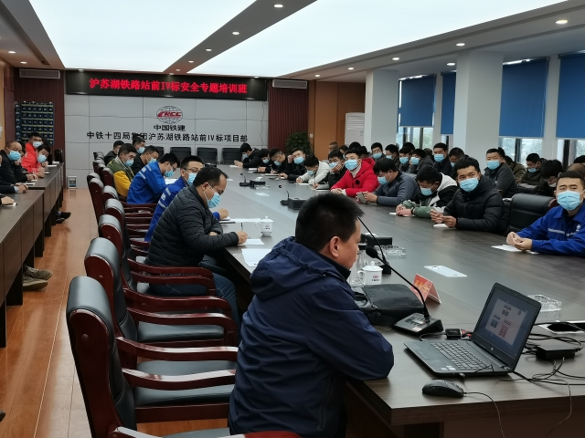 2020年11月28日上午,VSport体育与中铁14局联合举办的的沪苏湖铁路站前IV标安全专题培训班开班。本期培训班有来自项目部的管理人员、新员工,共计65人。