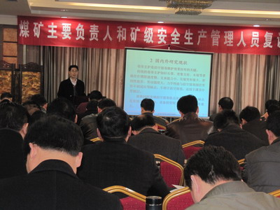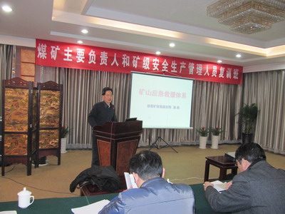 2014年3月10日,江苏煤矿主要负责人和矿级安全生产管理人员复训班按照计划开班。培训时间3月10日至3月13日,地点在徐州郡岭庄园。学习的主要内容是:近期煤矿安全生产法律法规、自救器佩戴和创伤急救、煤岩与瓦斯动力灾害和防治、沿空留巷、应急救援和应急救援推演及管理技术研讨、交流。培训对象为江苏境内的煤矿企业主要负责人和矿级管理干部等。