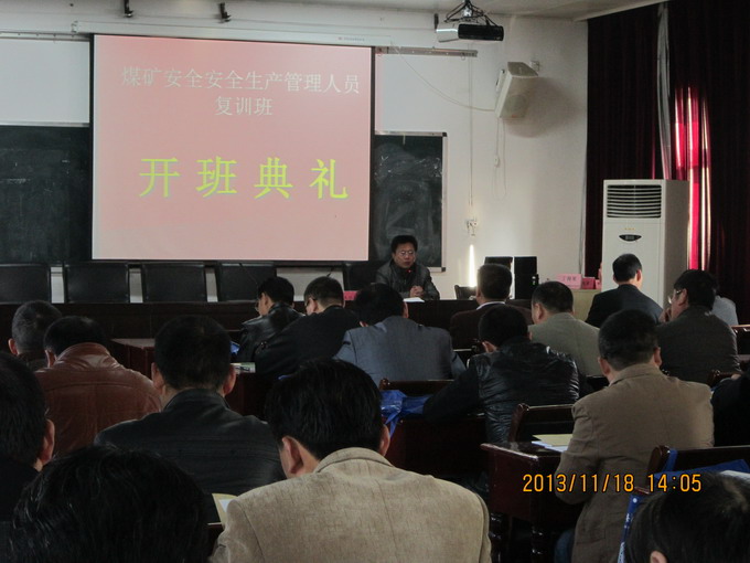 11月18日,201341期煤矿安全生产管理人员复训班开班,上午来自全省各大煤矿企业或公司的煤矿安全生产管理人员陆陆续续来到培训中心报道。下午2:00在教学三楼501室召开了开班典礼,开班典礼由培训部王明新主任主持,王主任首先对来参加培训的人员表示热烈欢迎,然后介绍了培训中心整体情况,最后对参培人员提出了具体的要求。本次培训班为期4天,于11月21日结束。