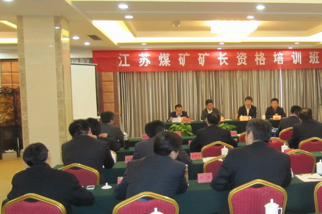2013年第一期江苏省煤矿矿长资格培(复)训班于4月15日在徐州由省煤矿安全技术培训中心承办。省经济与信息化委员会煤炭处副处长童春平、董柏林主任,公司分管安全培训的任国兴副董事长参加了开班典礼,开班典礼由培训部主任王明新主持。任国兴副董事长首先致欢迎词,并介绍了公司的基本情况、本期培训班计划的安排考虑。童春平副处长介绍了国家、省煤炭工业的形势、发展趋势和要求,对本期培训班的培训学习提出了要求。王明新主任传达了培训计划和有关要求。