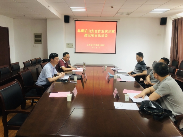 2021年6月10日,公司非煤矿山安全作业实训室论证会议在综合楼1015室召开。江苏省安全生产宣传教育中心考核管理科副科长马先明、徐州市安全生产技术保障中心负责人 安旭、中国矿业大学信息科学系主任江海峰、VSport体育副主任许波勇、沈兆振、周婷老师参加了论证会。会议由许主任主持。