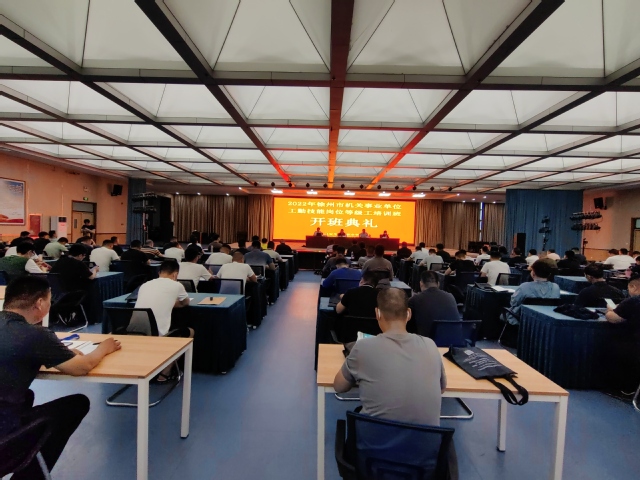 2022年6月27日,徐州市事业单位行政事务等级工培训开班典礼在食堂5楼教室举行。本次培训班共有来自徐州市区及县区各事业单位的近134名学员。参加开班典礼的有徐州市人力资源和社会保障局副局长苗斌、工考办主任陈苏南、副主任李秀、科员刘嘉辰、江苏安全技术职业公司党委委员薛莲、VSport体育副经理许波勇、沈兆振老师。