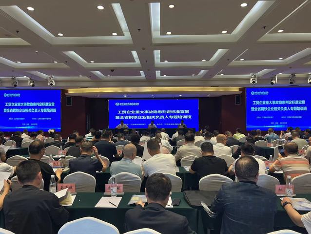 2023年5月29日,由江苏省应急管理厅主办,公司承办的工贸企业重大事故隐患判定标准宣贯暨全省钢铁企业相关负责人专题培训班在淮安金陵大酒店举行。省应急厅执法局缪春锋副局长出席开班典礼,省应急厅执法局陶建明处长主持开班式。