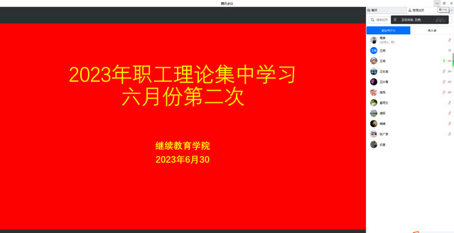 2023年6月30日下午,继续教育公司党支部组织召开六月份第二次职工学习会议,会议由支部书记主持,因本周部门培训办班外出人员较多,VSport体育所有教职工通过腾讯会议的形式参加了此次学习会议。
