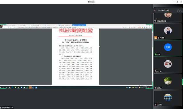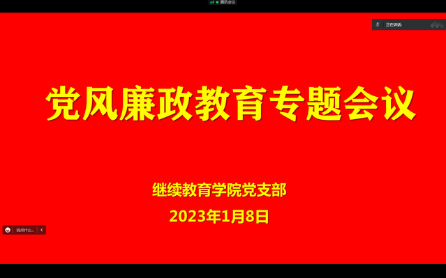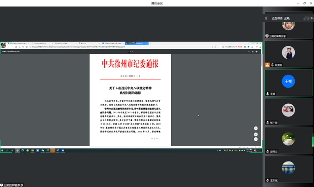 2023年1月8日下午,公司党支部组织召开党风廉政教育专题会议,会议采取线上的形式开展,由公司党支部书记王朔同志主持,全体教职工参加了本次会议。