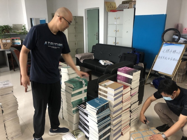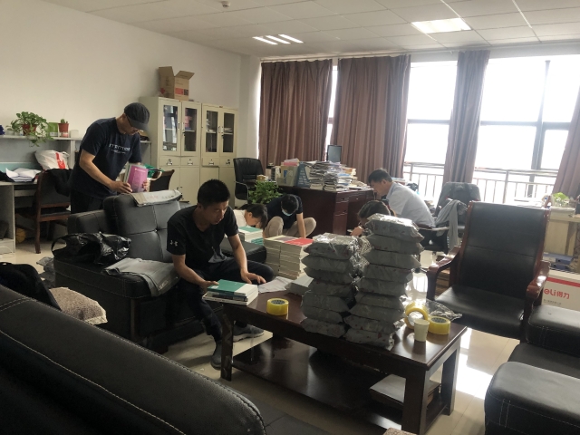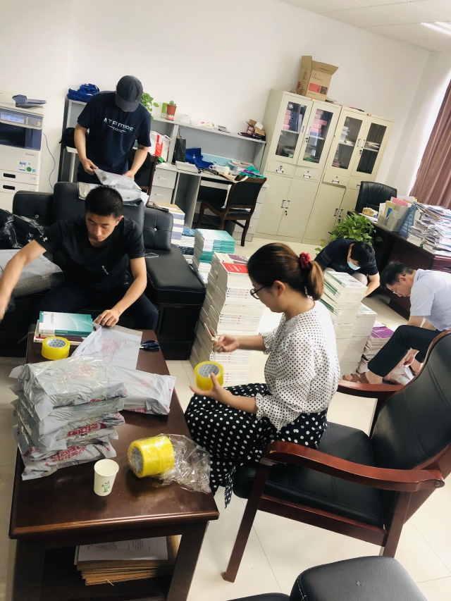 2021年7月19日,公司党支部根据6月份制定的《公司党支部党史学习教育工作方案》安排,组织全体党员和部分职工为公司2021级自考员工快递自考教材办实事服务活动。