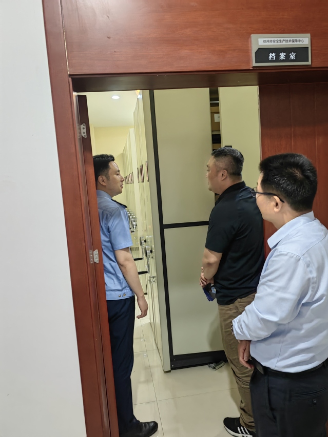 座谈会后,在徐州市应急管理局第一党支部副书记殷朗的引导陪同下,公司支部书记王朔及所有党员一起参观了徐州市安全生产技术保障中心的考试考核中心及档案室,深入了解了特种作业考试考核的过程模式,并向他们学习了档案整理规范方面的一些先进的工作方法。