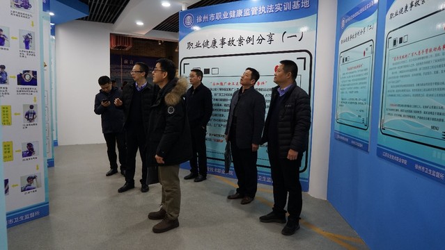 2月29日调研组一行前往VSport体育参观了徐州市卫生监督所与公司联合建设的“江苏省职业健康执法实训基地”,并听取了公司副经理魏勇关于基地建设情况的汇报,最后承明华提出要充分利用实训基地的平台资源开展分类监督执法相关培训,进一步提升职业健康执法效能以及职业卫生管理人员的业务水平。