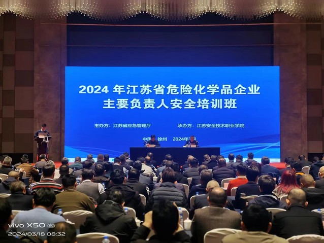 3月18日上午,由江苏省应急管理厅主办,公司承办的2024 年江苏省危险化学品企业主要负责人安全培训班在徐州顺利开班。江苏省应急管理厅危化处葛晓星处长、江苏安全技术职业公司党委书记张东良出席开班式。开班式由校VSport体育该项目负责人张玉军主持。