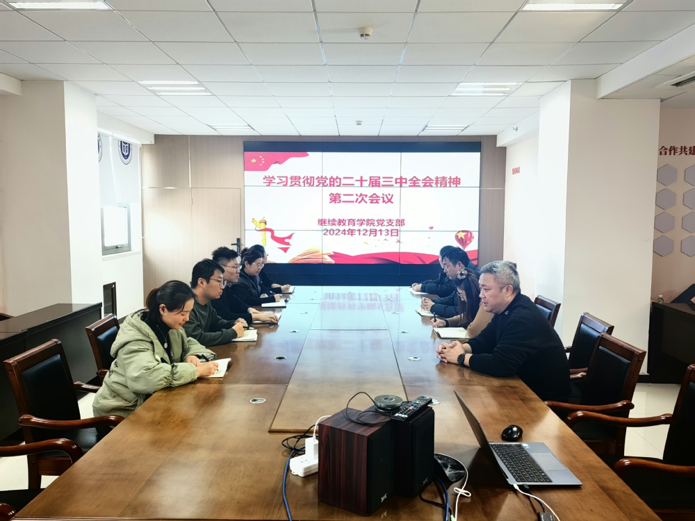 会议伊始,党支部书记王朔带领全体党员教职工再次深入学习了党的二十届三中全会审议通过的《中共中央关于进一步全面深化改革、推进中国式现代化的决定》。通过对全会报告的详细解读,与会人员进一步明确了全面深化改革的总体目标、基本原则和重点任务,深刻认识到教育在中国式现代化建设中的基础性、战略性支撑地位,以及继续教育在构建终身教育体系、服务社会发展中的重要作用。