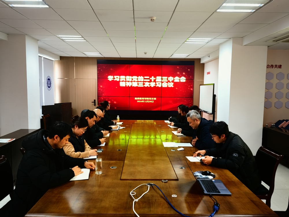 为深入学习贯彻党的二十届三中全会精神,进一步提高党员干部的政治素养和理论水平,推动继续教育事业高质量发展,2024年12月27日,公司党支部组织召开了学习贯彻党的二十届三中全会精神第三次学习会议,公司全体党员干部参加了此次会议。